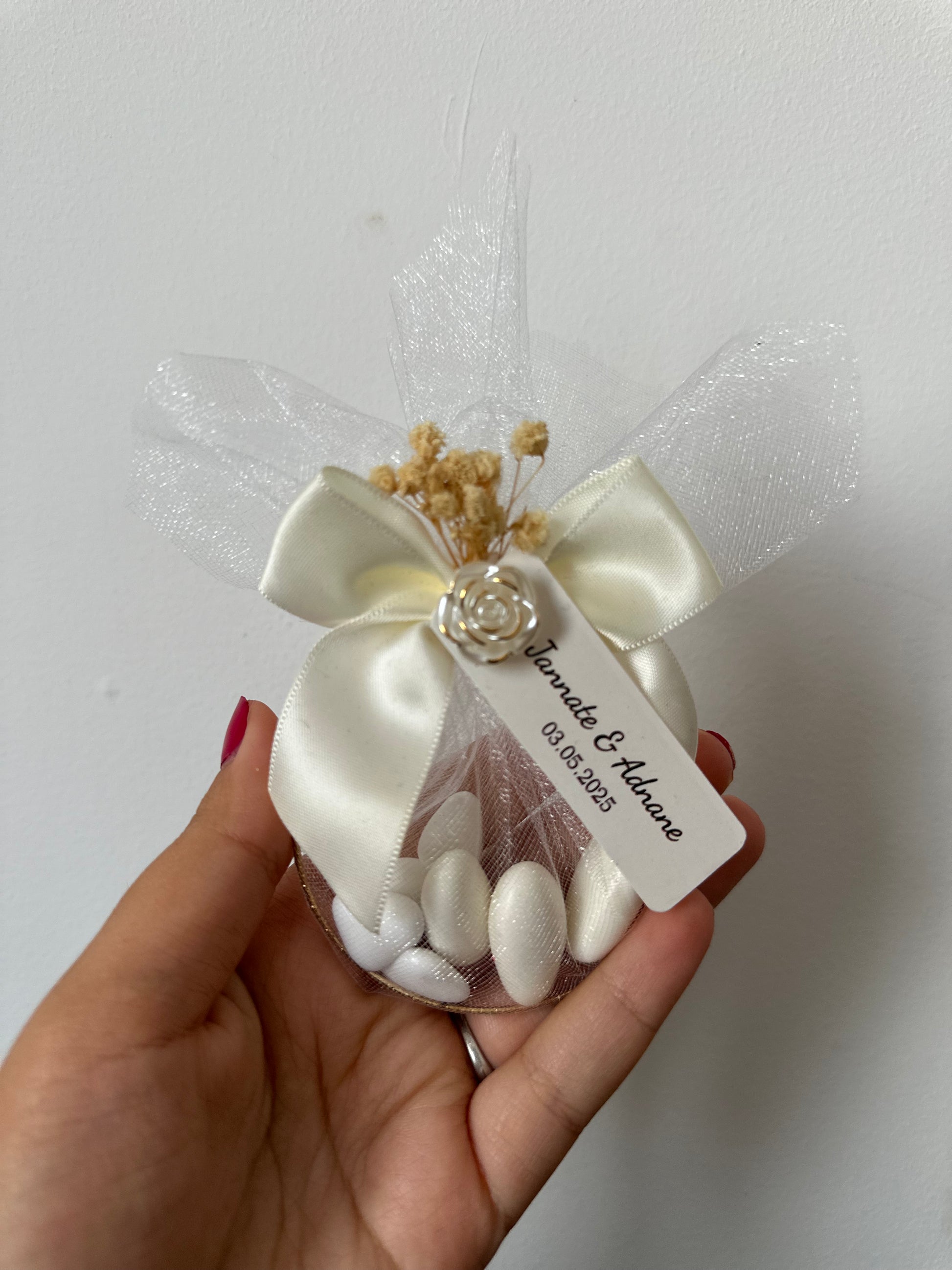 Ajoutez une touche unique à vos souvenirs avec nos dragée personnalisés ! Que ce soit pour une fiançailles, un mariage, un henné, un baptême ou un anniversaire, créez un cadeau original et inoubliable.